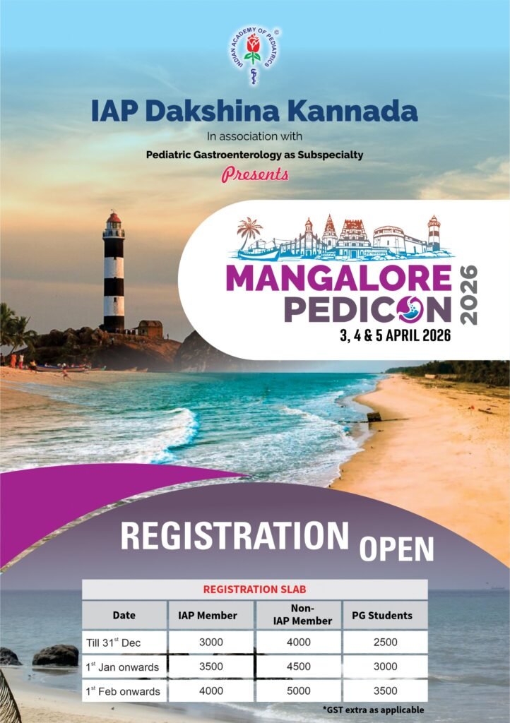 Mangalore Pedicon 2026 IAP Members Registration Non IAP Members Registration PG Student Registration Registration queries-Contact: Mamatha M +91 6364690353